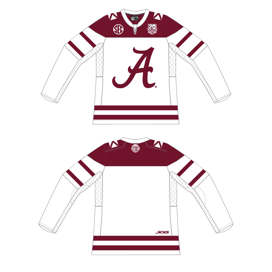 This authentic, game-weight replica jersey will be a superior fit to your collection of University of Alabama Hockey Club fan apparel. All jerseys come with cover seam stitching and mesh inserts and tackle twill/embroidery front logo.